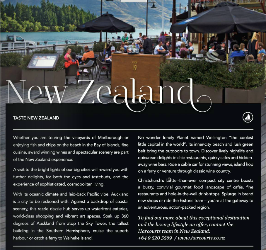 Brief: Aspirational, descriptive content to engage high net worth audience in luxury destinations in Australia and New Zealand.